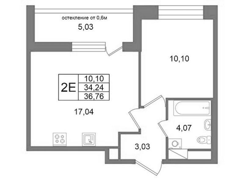 Однокомнатная квартира на 3-ем этаже 34,24 кв.м