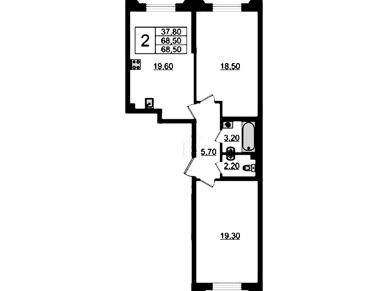Двухкомнатная квартира на 2-ом этаже 68,5 кв.м