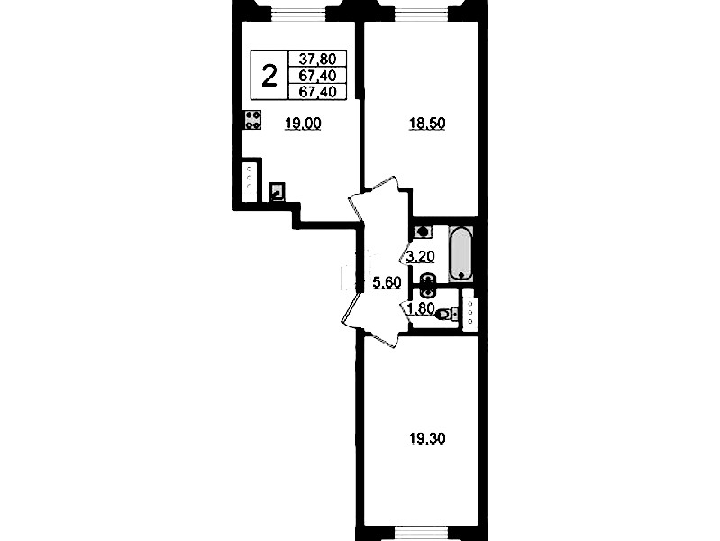 - Площадь67,4 м2