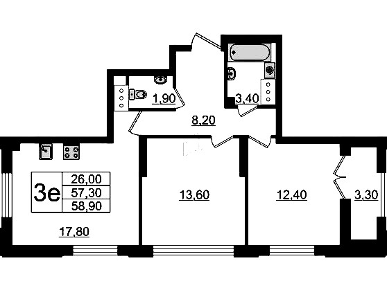 • Площадь58,9 м2