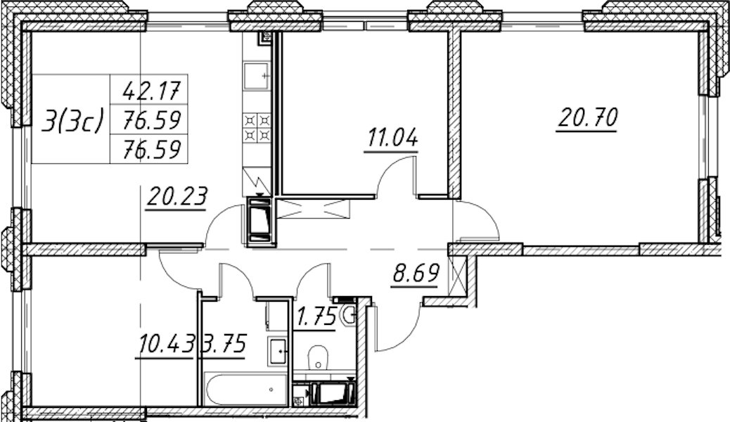 - Площадь76,59 м2