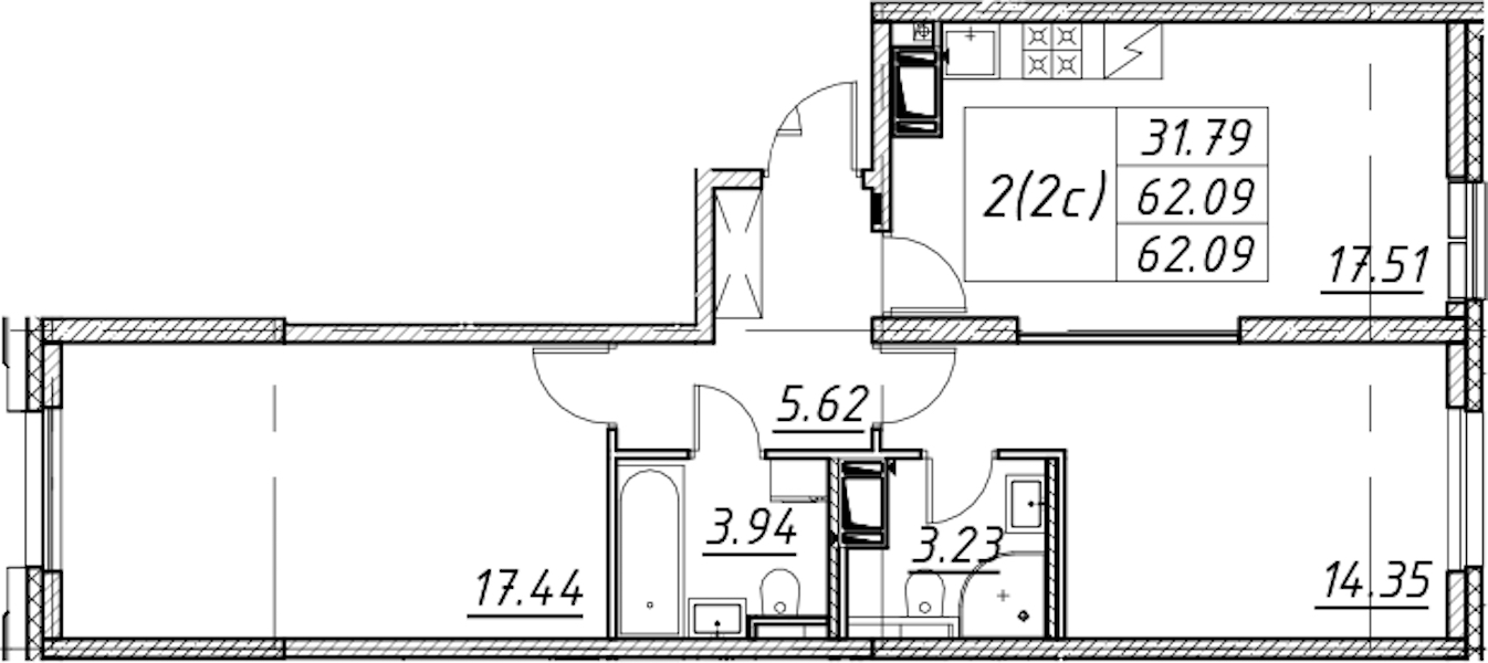 - Площадь62,09 м2