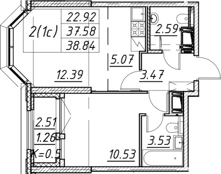 - Площадь38,84 м2