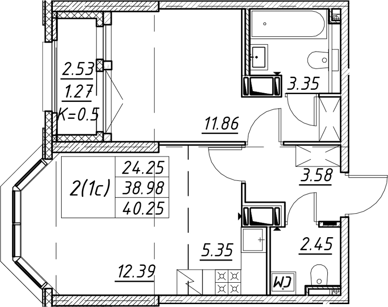 • Площадь40,25 м2