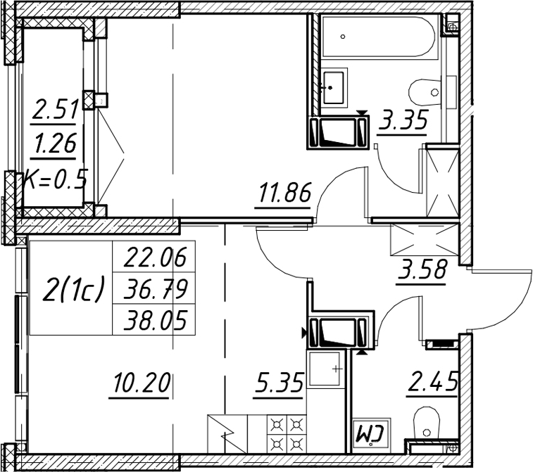 - Площадь38,05 м2