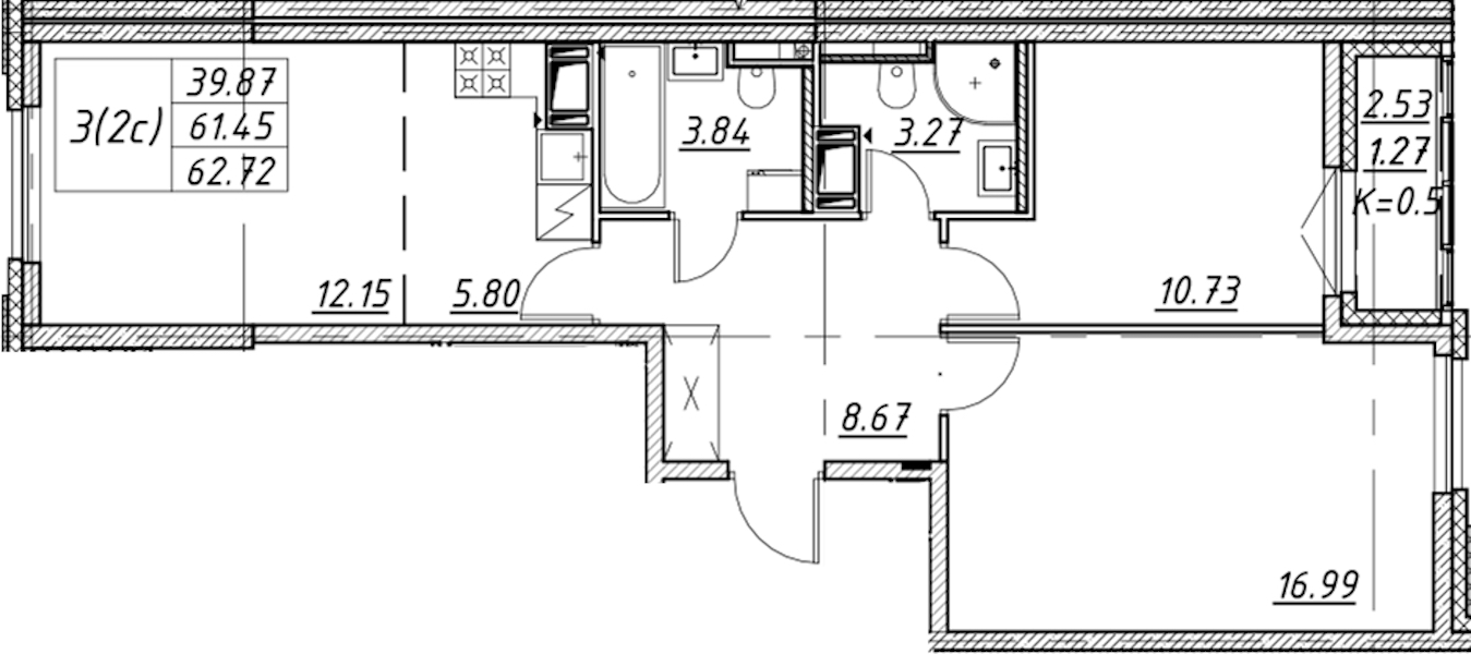 • Площадь62,72 м2
