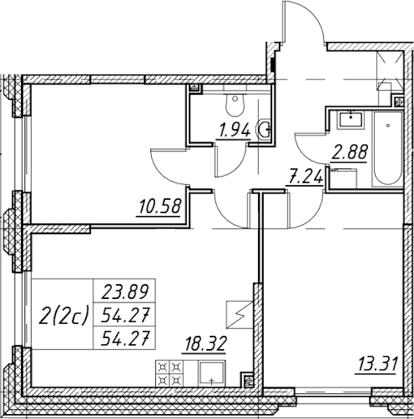 • Площадь54,27 м2