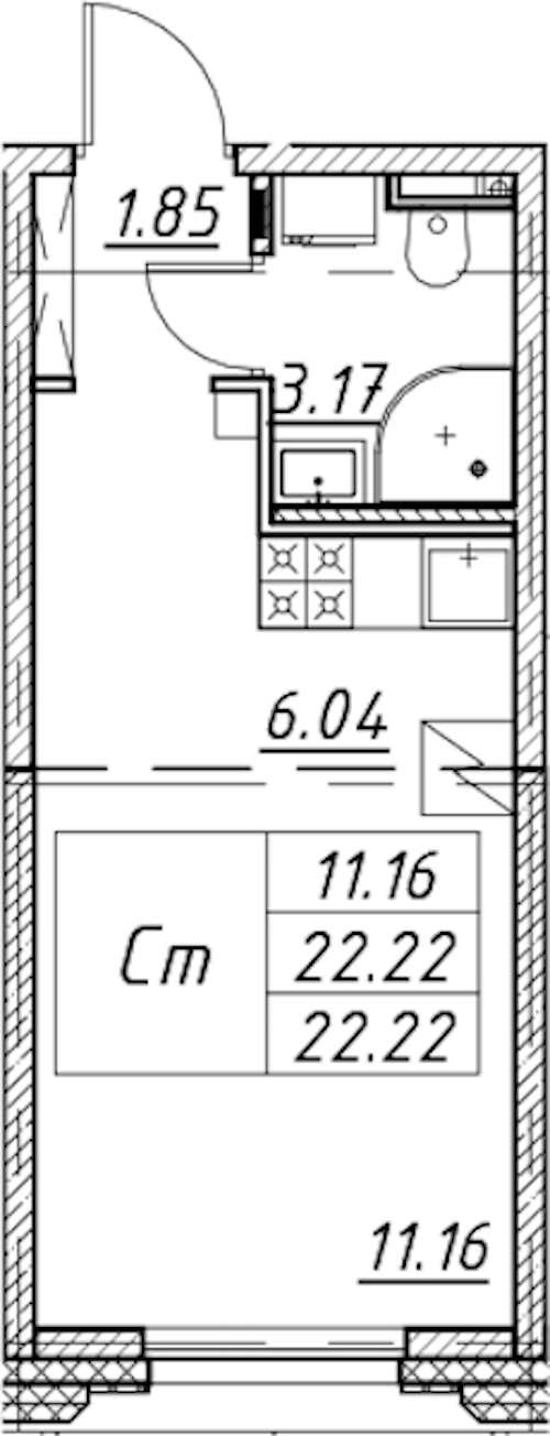 Квартира-студия на 2-ом этаже 22,22 кв.м