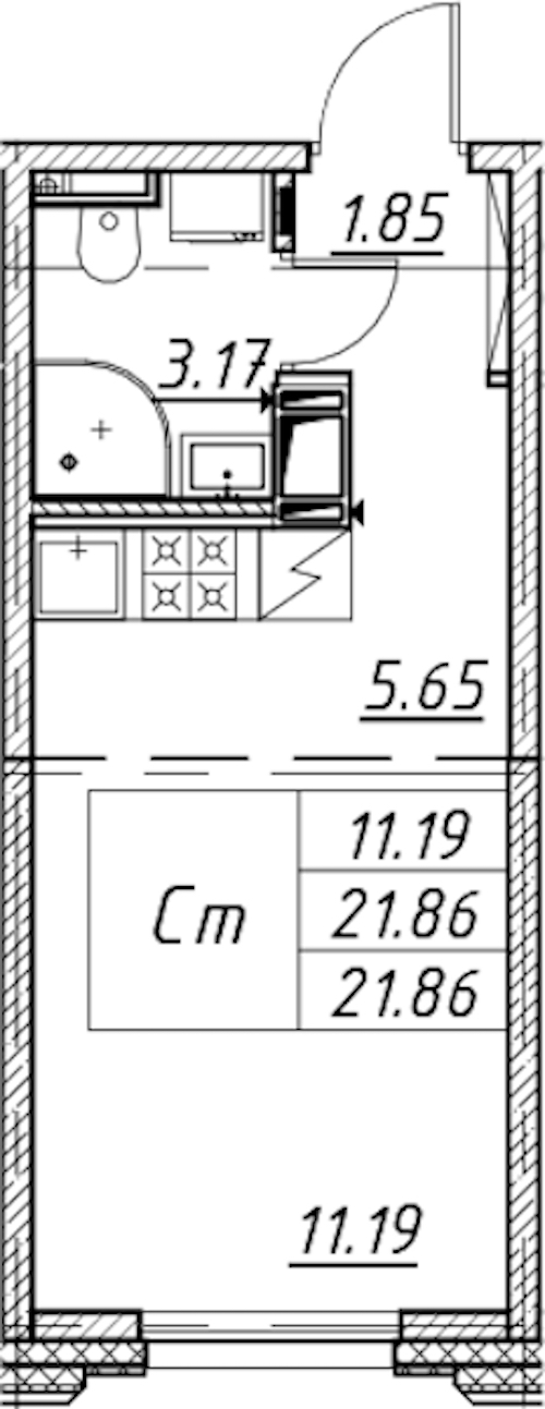 Квартира-студия на 5-ом этаже 21,86 кв.м