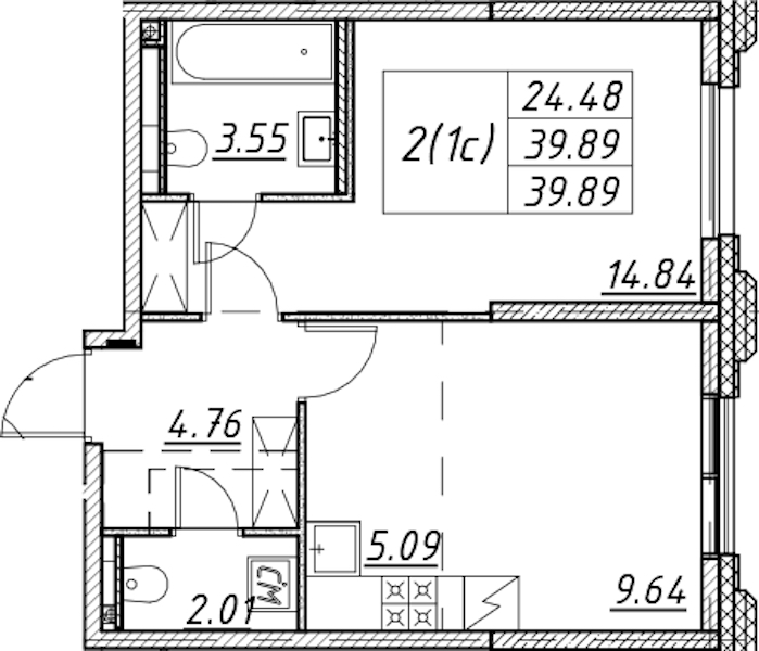 - Площадь39,89 м2