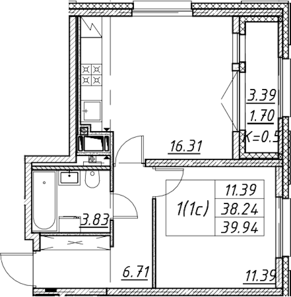 • Площадь39,94 м2