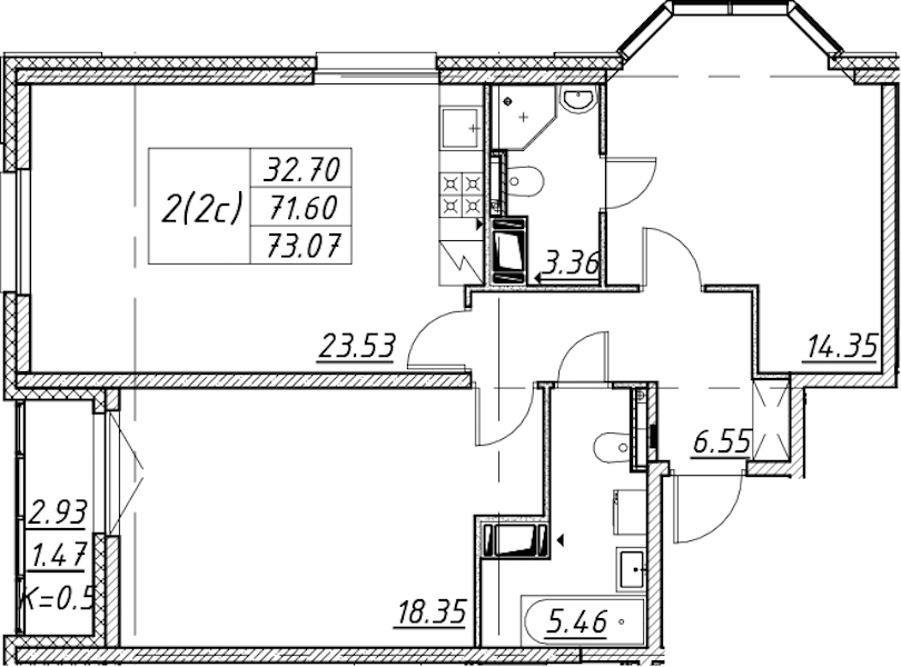 • Площадь73,07 м2