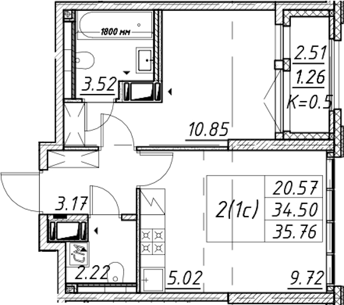 • Площадь35,73 м2