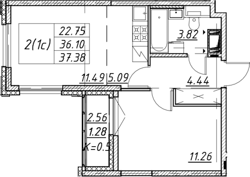 • Площадь37,38 м2