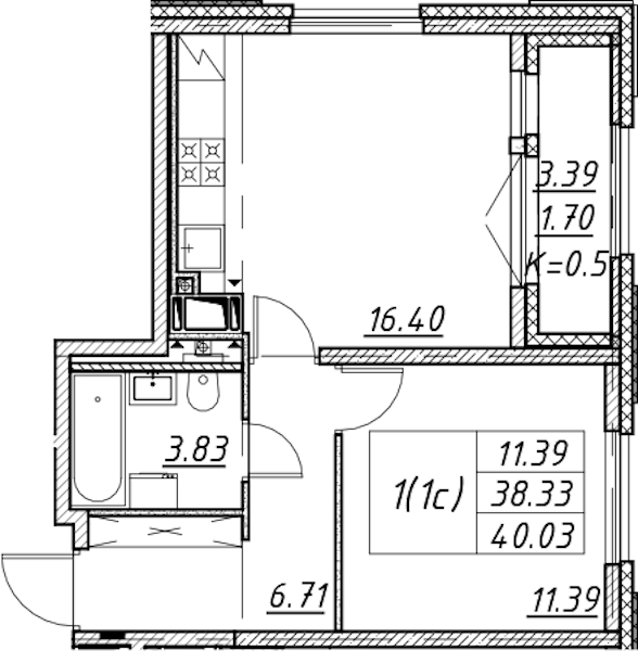 • Площадь40,03 м2