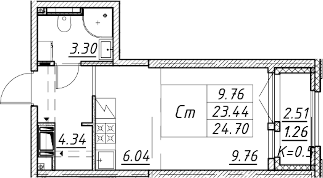 • Площадь24,7 м2
