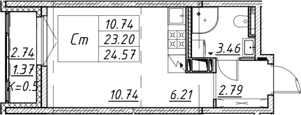 - Площадь24,57 м2