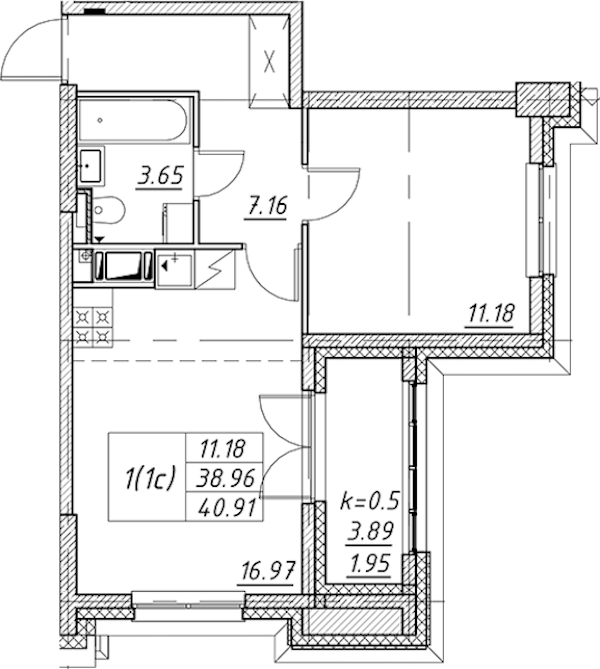 • Площадь40,91 м2