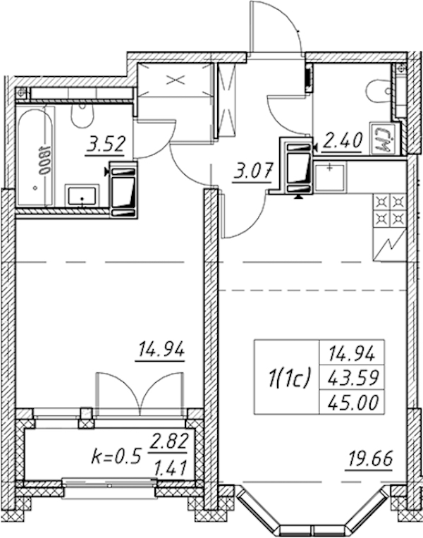 - Площадь45 м2