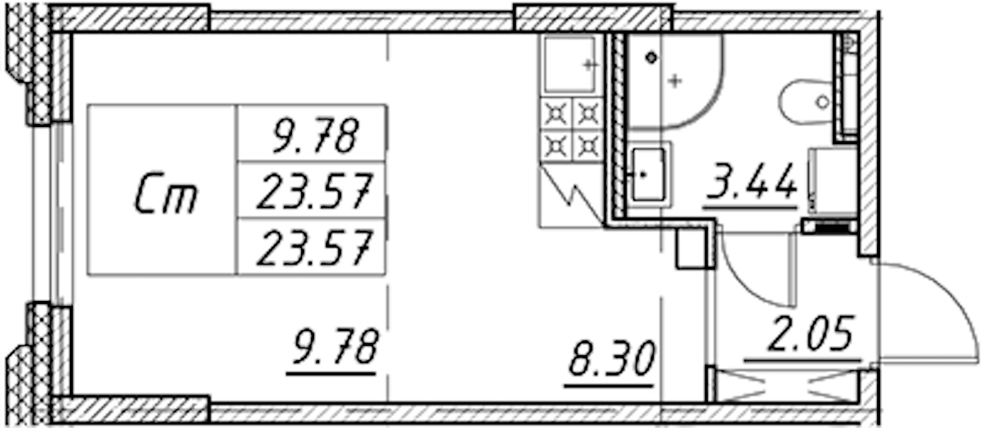 - Площадь23,57 м2