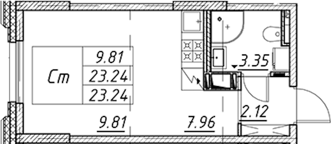 Квартира-студия на 3-ем этаже 23,24 кв.м