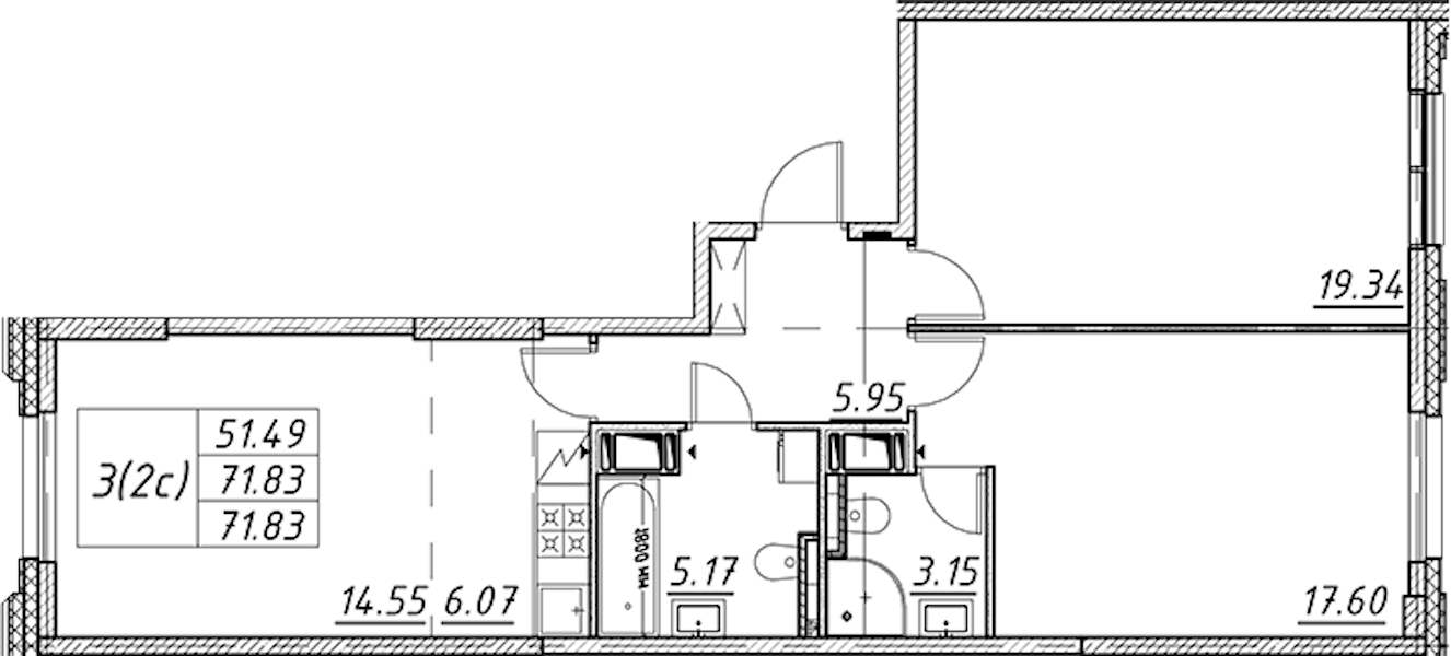 - Площадь71,83 м2