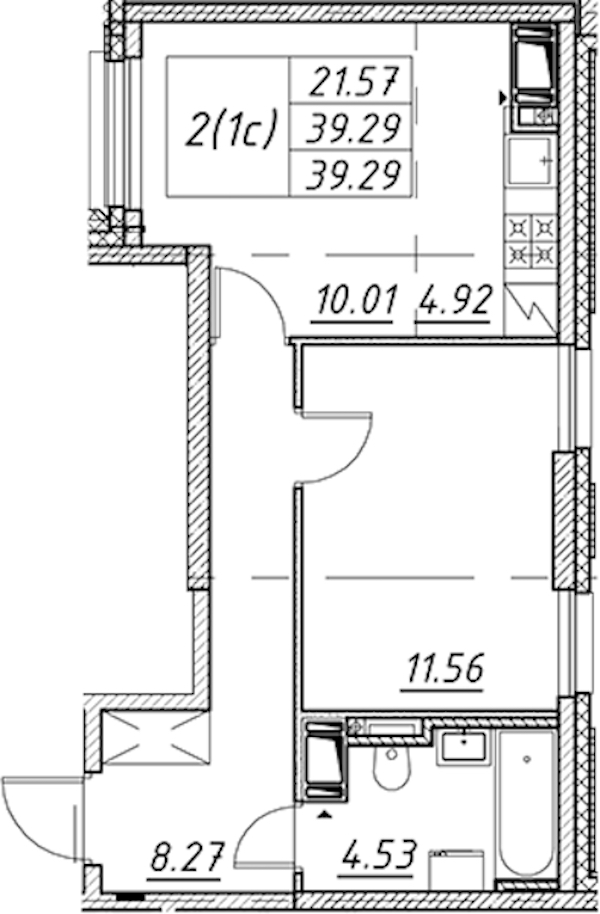 Однокомнатная квартира на 4-ом этаже 39,29 кв.м