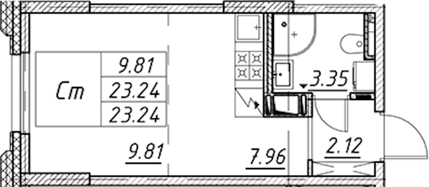Квартира-студия на 4-ом этаже 23,24 кв.м