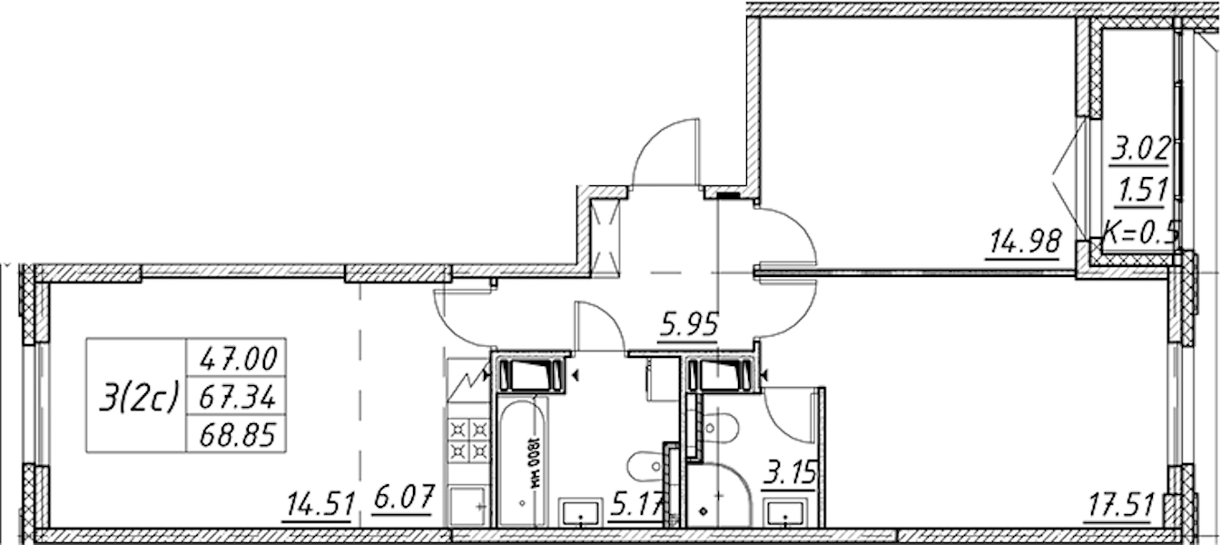 - Площадь68,85 м2