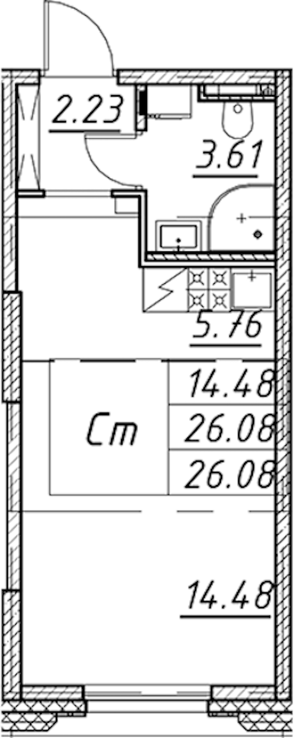 Квартира-студия на 2-ом этаже 26,08 кв.м