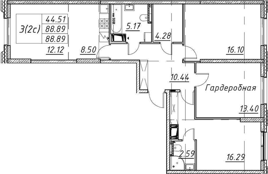 • Площадь88,89 м2