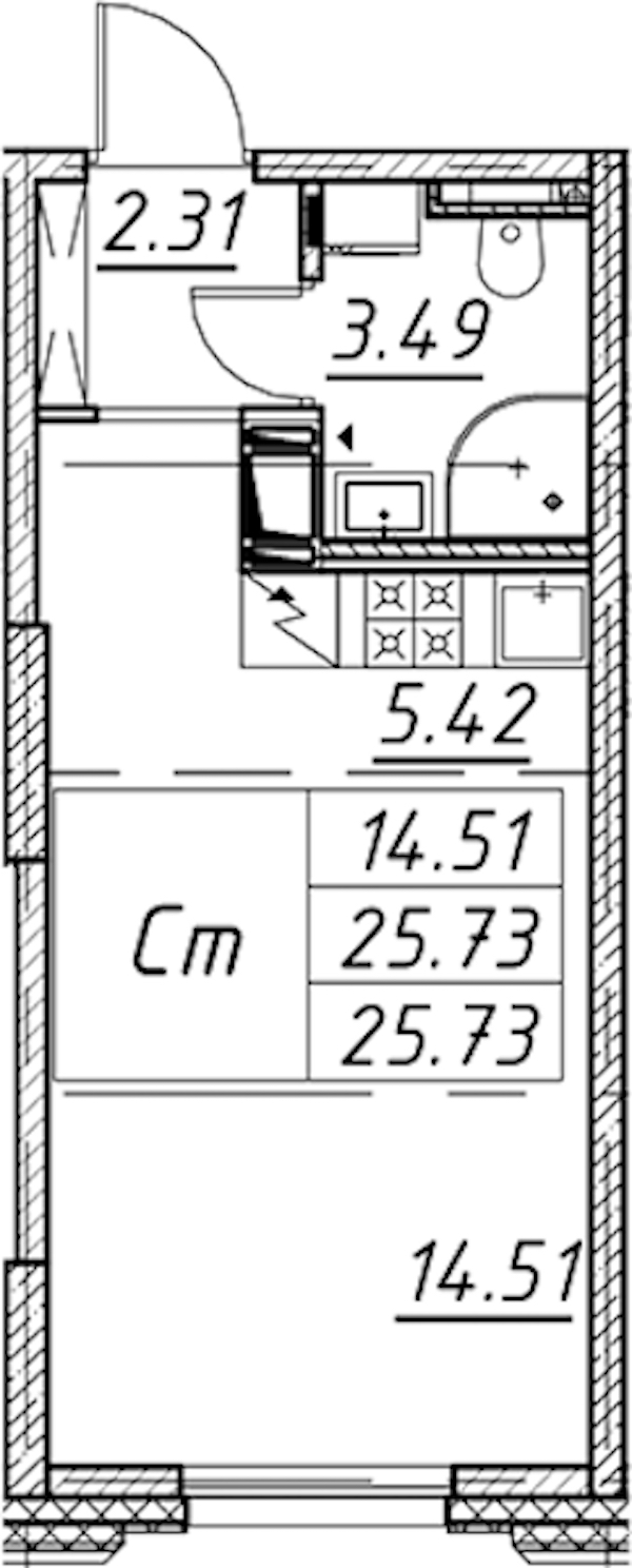- Площадь25,73 м2