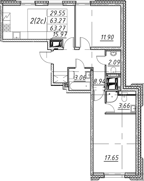 • Площадь63,27 м2