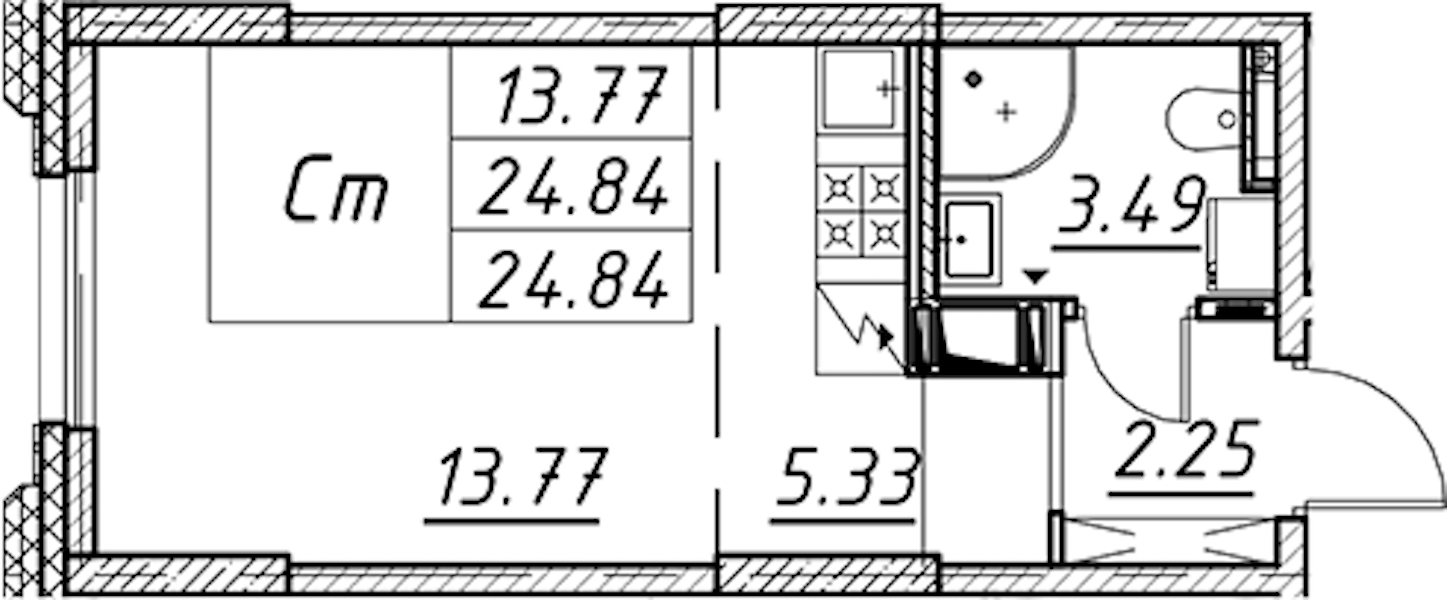 Квартира-студия на 4-ом этаже 24,84 кв.м