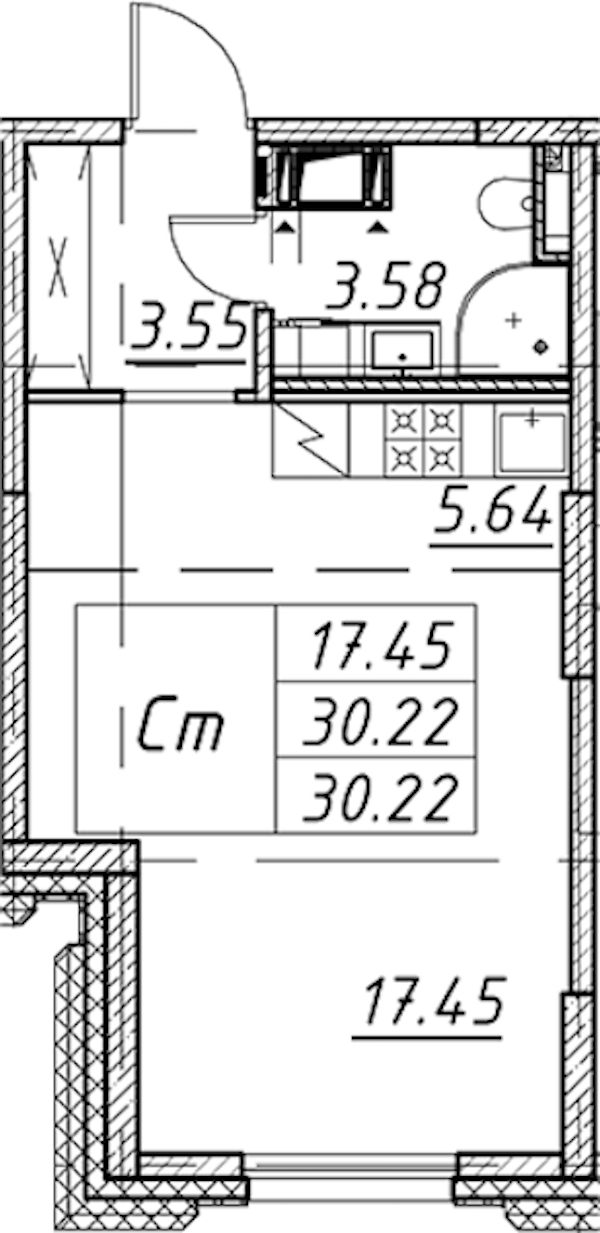 Квартира-студия на 4-ом этаже 30,22 кв.м