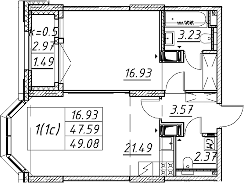 - Площадь49,08 м2
