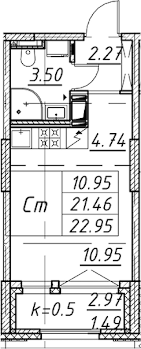• Площадь22,95 м2