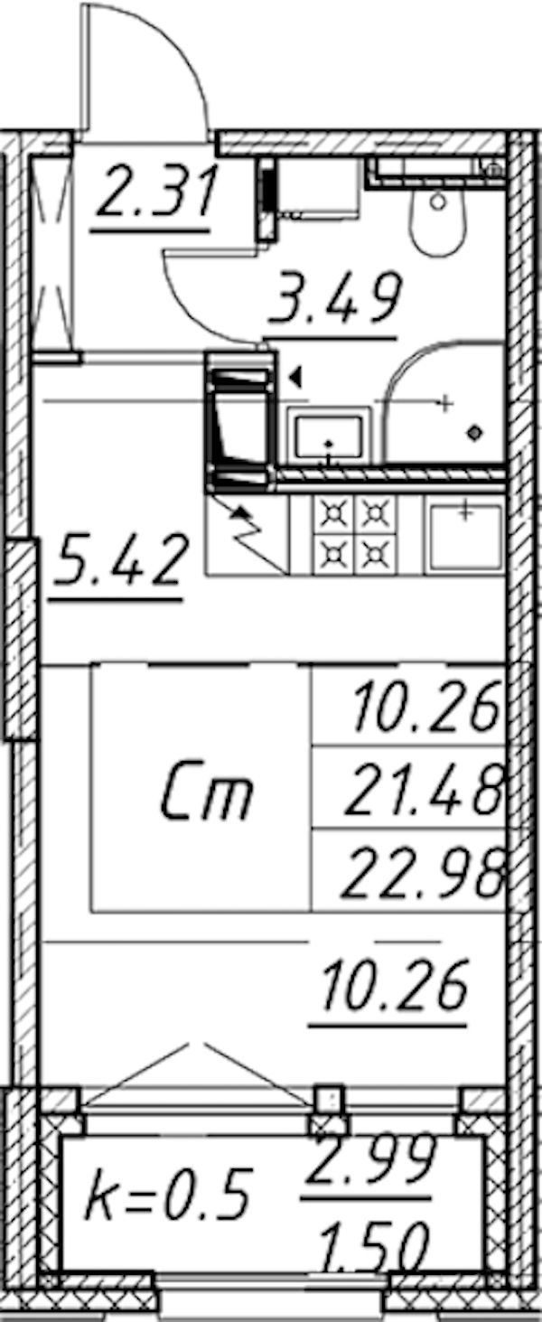 • Площадь22,98 м2