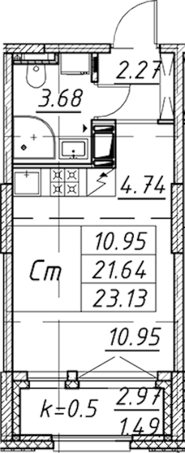 - Площадь23,13 м2