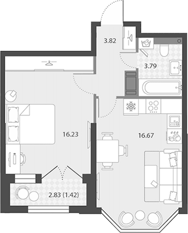 - Площадь кухни16,67 м2