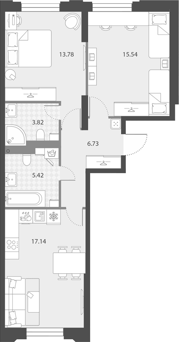 - Площадь62,43 м2