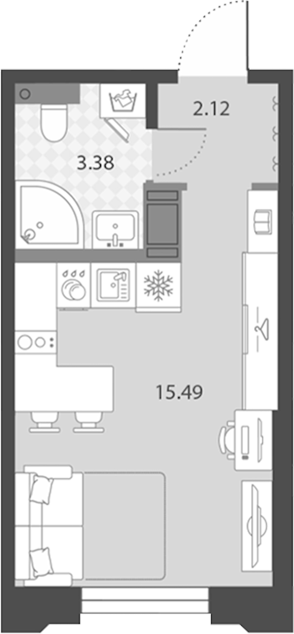 Квартира-студия на 3-ем этаже 20,99 кв.м