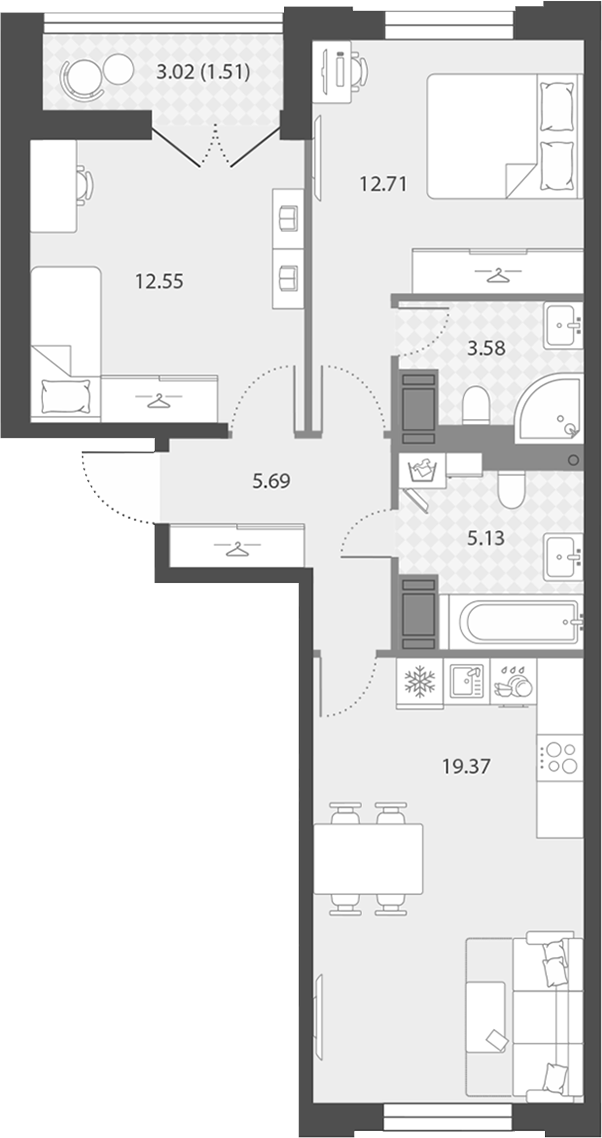 - Площадь60,54 м2