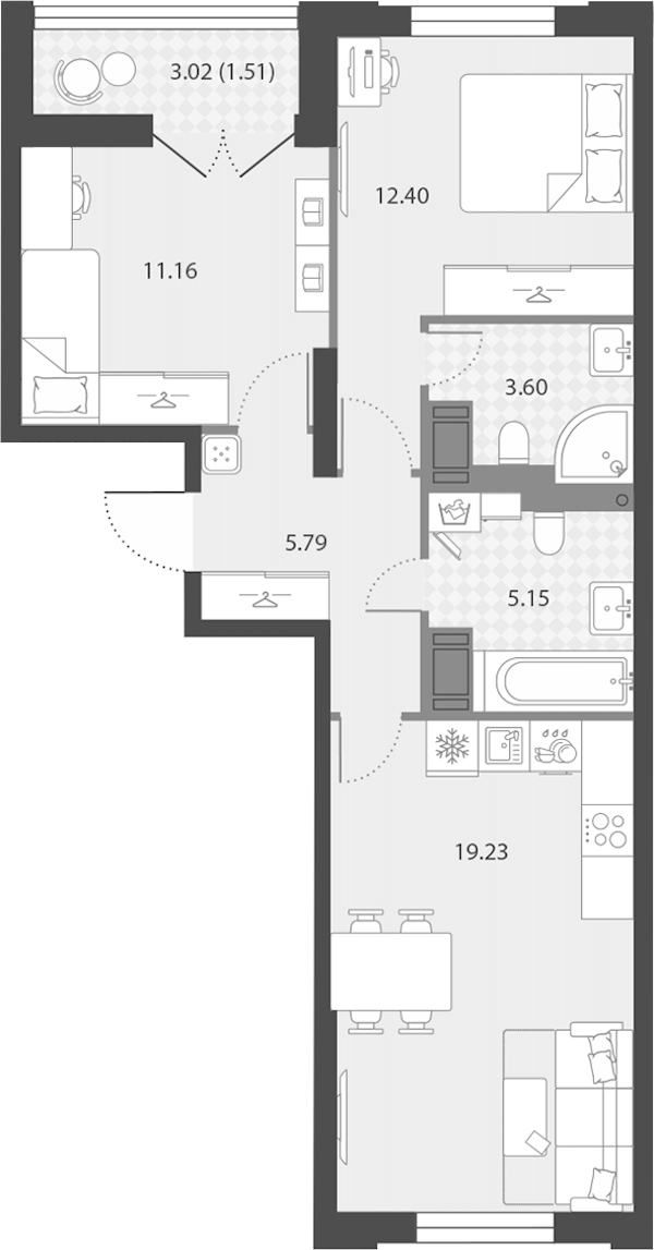 • Площадь58,84 м2