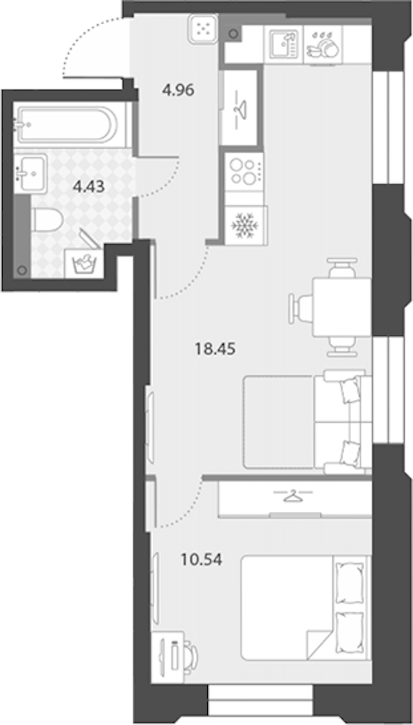 Однокомнатная квартира на 2-ом этаже 38,38 кв.м