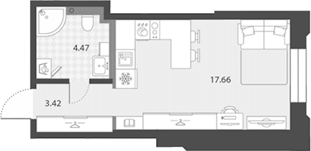 Квартира-студия на 2-ом этаже 25,55 кв.м