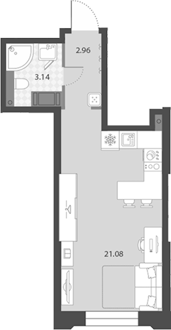 Квартира-студия на 5-ом этаже 27,18 кв.м