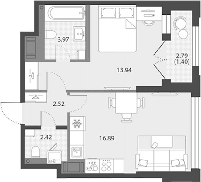 - Площадь41,14 м2