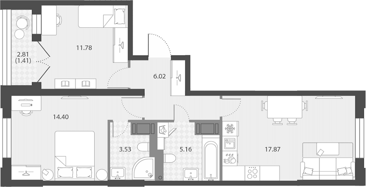 - Площадь60,17 м2