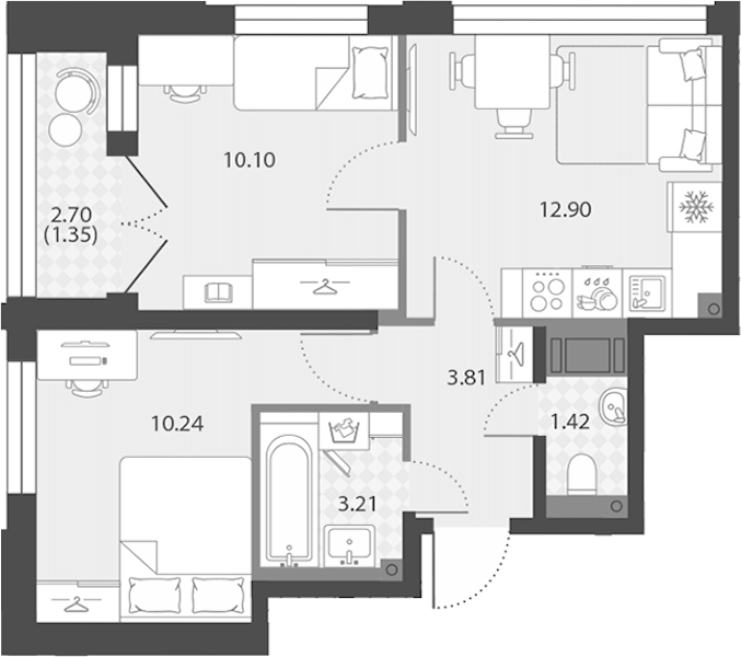 • Площадь43,03 м2